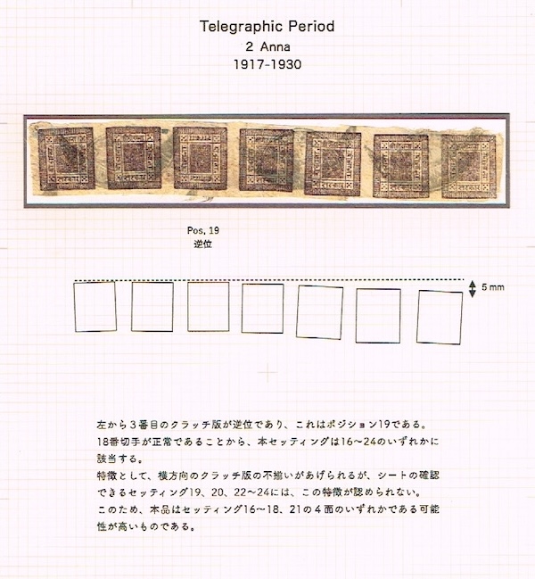 “Telegraphic Period” と言うのは、ネパールで電信が始まった時に、その料金払いに対応するために、ファーストシリーズの原版を使って印刷したものを指します。