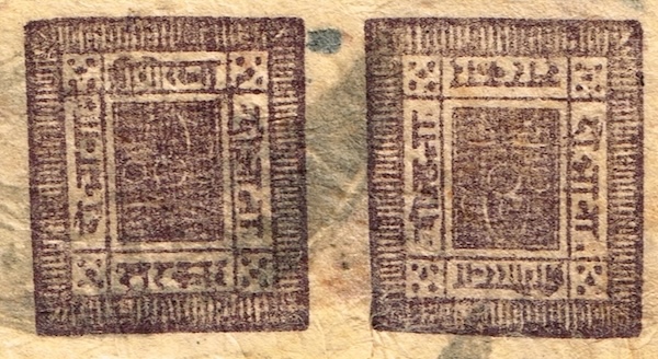 画像は、ネパールのファーストシリーズの中から、 “Telegraphic Period” と呼ばれる後期印刷のもので、額面は2アンナ。