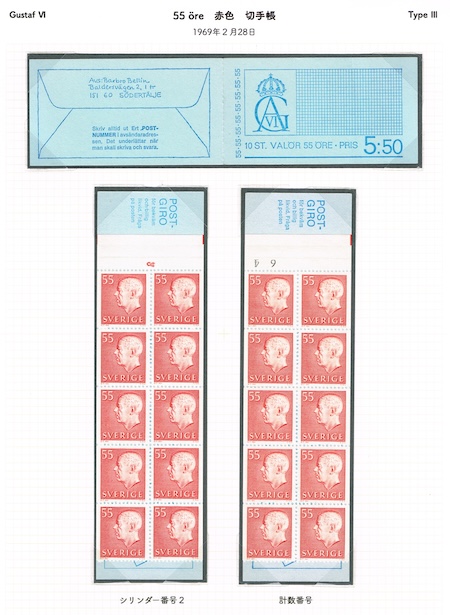 画像は55オーレの切手帳で、左はシリンダー番号2。