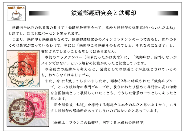 9月発行の鉄道郵趣研究会報に、下の画像の記事を載せました。