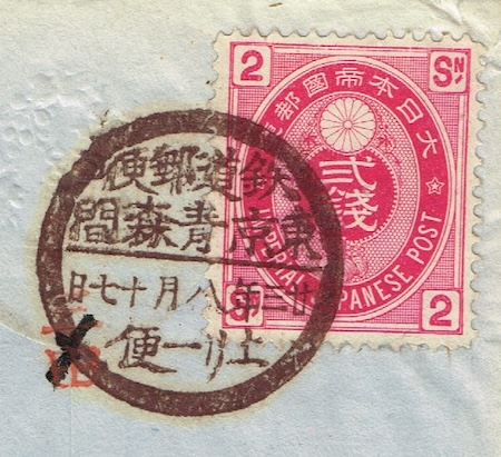 確かに鉄道が青森まで延びたのは明治24年なので、この消印の年(明治23年)に青森には、まだ鉄道は達していませんでした。