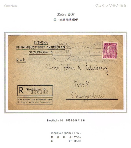 35öreの内訳は、書留料金が20öreで、市外宛書状料金が15öre。