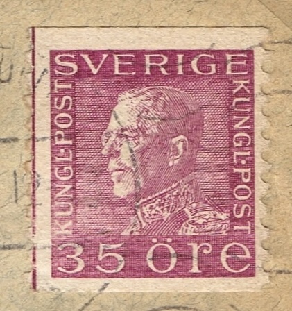 スウェーデンのグスタフ5世左向き(正面向き、右向きというのもあります)35öreコイル切手の1枚貼り。