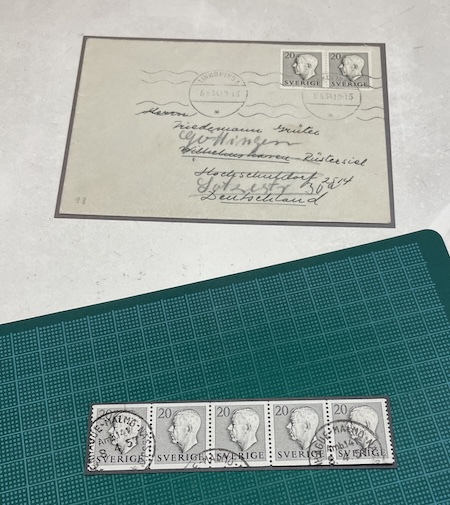 夏の切手展に向けて、「マウント切り」ならぬ「台紙切り」。