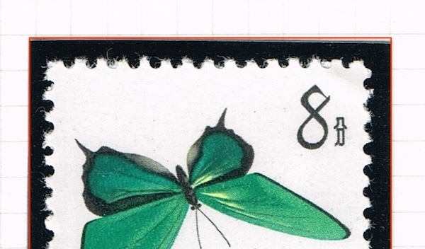 切手よりだいぶ背の高いマウントを、切手の高さに合せて切ったのですが、上辺が歪んでいます。