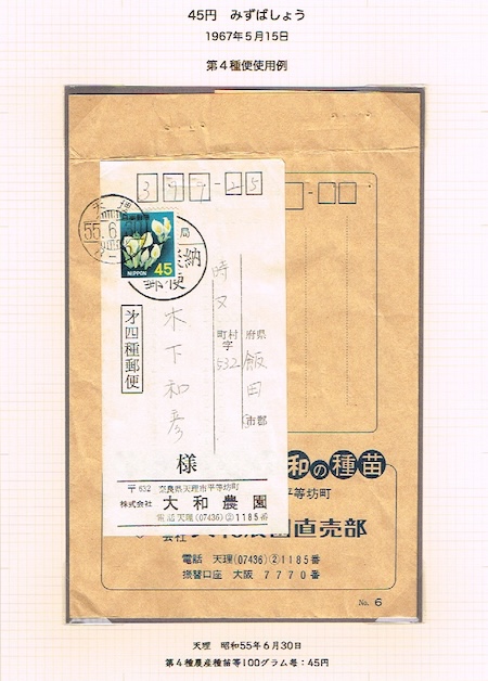 そんな切手の適応1枚貼りが、画像の第4種農産種苗便。